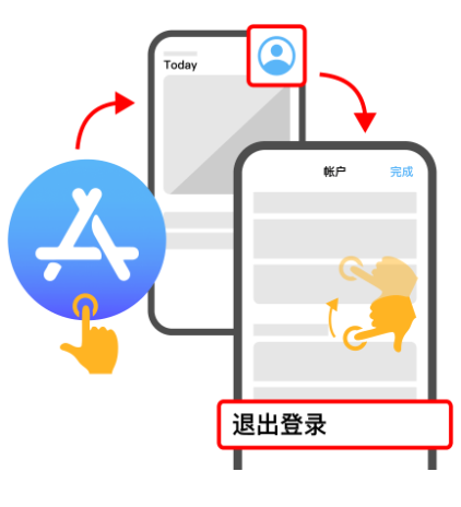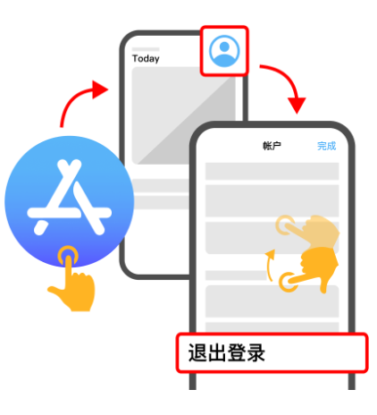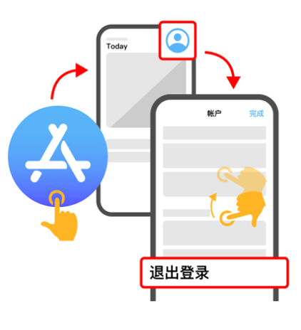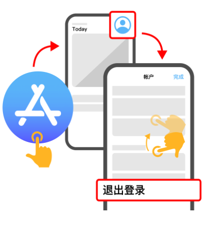 下载完成后,在 App Store 中点击右上角图标,滑到页面底部,点击退出登录,然后登陆自己的 ID