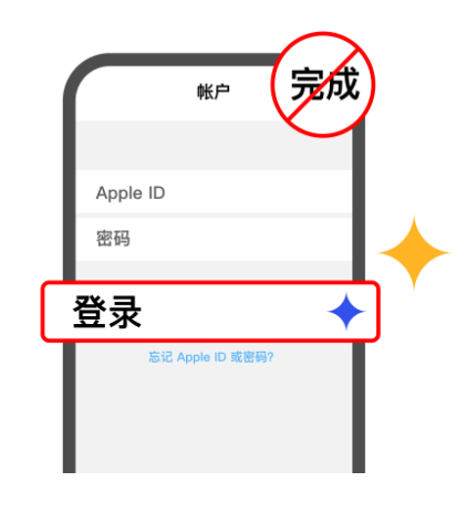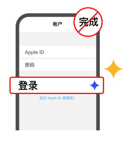 注意!不要点击右上角的完成!而是点击密码下方的登录!!