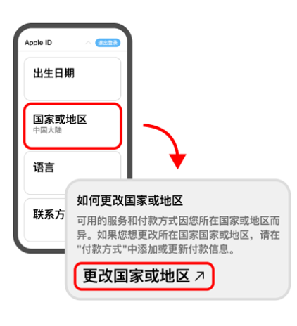 在个人信息页面选择国家或地区接着选择更改国家或地区