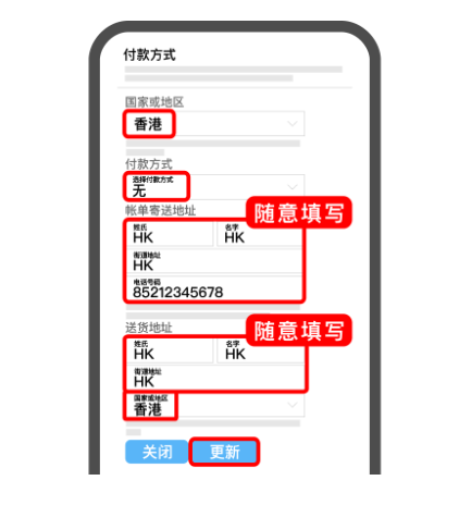 如果进入付款方式页面,请按照描述填写相关信息,最后选择更新即可